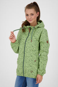 Trendige Damenübergangsjacke mit großer Kapuze, innenliegendem Kordelzug, elastischen Bündchenabschlüssen und farblich abgestimmten Reißverschluss.